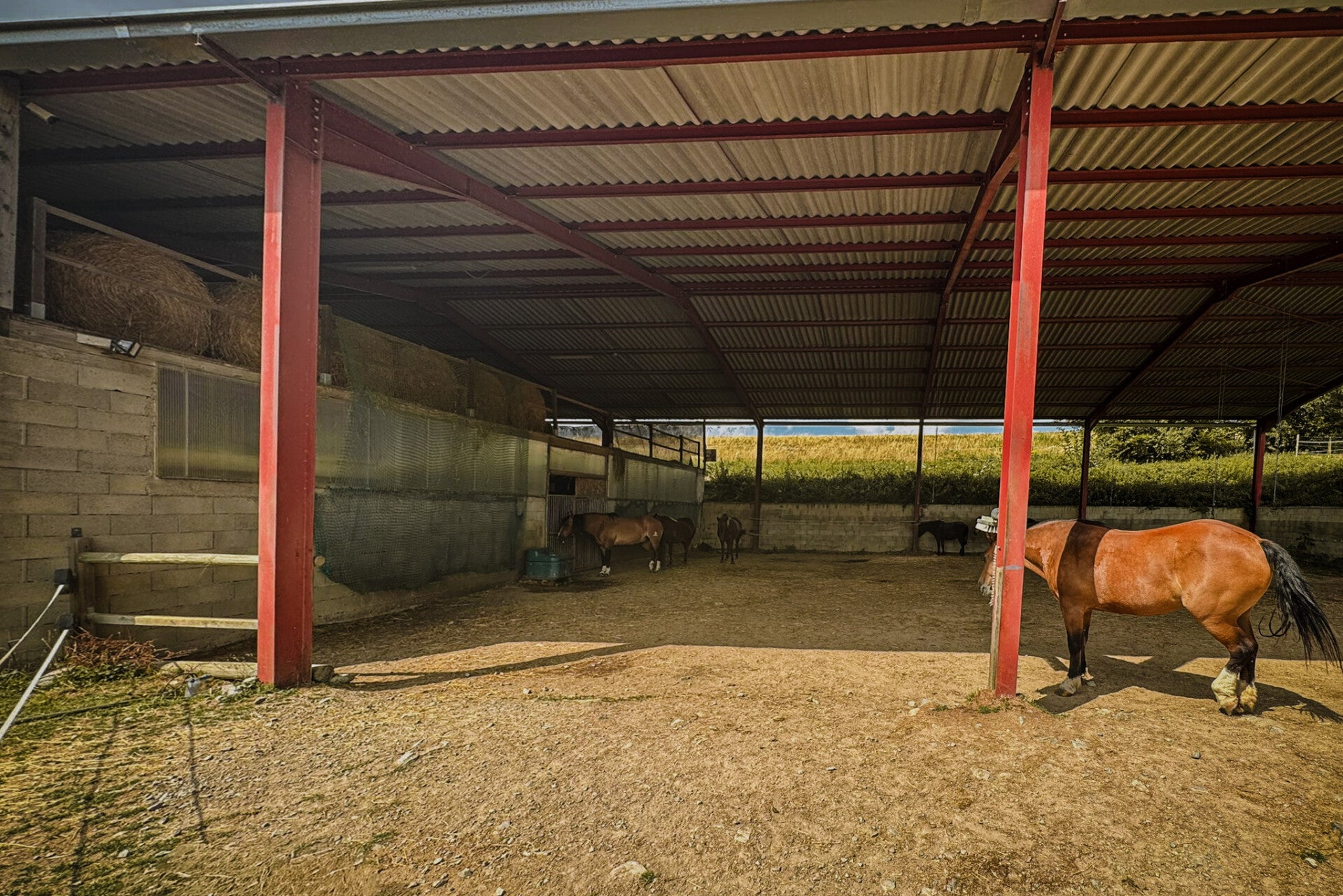 Pferdeinfrastruktur: 8 Boxen, grosser Heuboden, Trainingshalle, Pferdedusche & Roundpen
